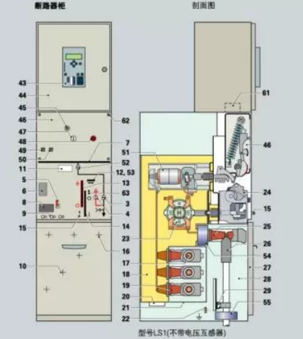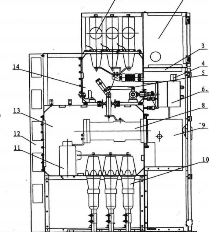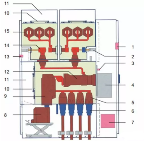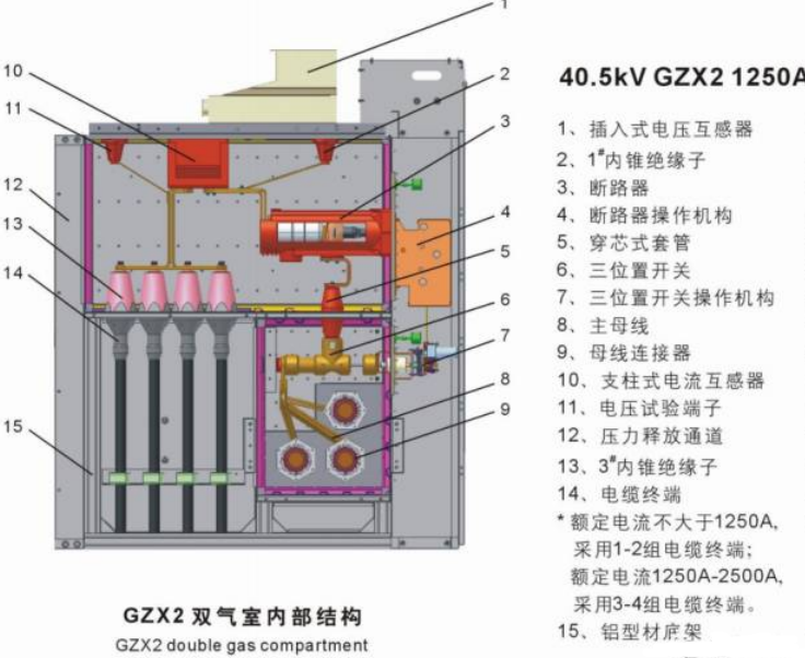 國內則主要是西安森源聯合開發的GZX系列,額定電流在2500A及以下,其結構如下圖:(目前市場上主要是側擴和頂擴,單氣室,雙氣室,三氣室的等)國內代表性廠家主要有常州太平洋,寧波天安,正泰,順德開關等。