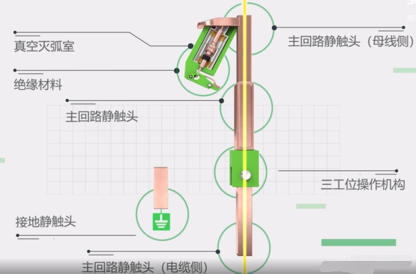 并聯(lián)真空開斷方案由真空滅弧室和空氣中的隔離開關(guān)組成,其實現(xiàn)了常見的三工位開關(guān)操作,而且零件數(shù)量小、成本低。