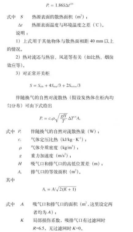 (2)熱對(duì)流是物體外表與相觸摸的流體間有溫差時(shí)呈現(xiàn)的傳熱現(xiàn)象。柜體外表、氣箱外表或熱源外表的天然對(duì)流散熱可用下式預(yù)算